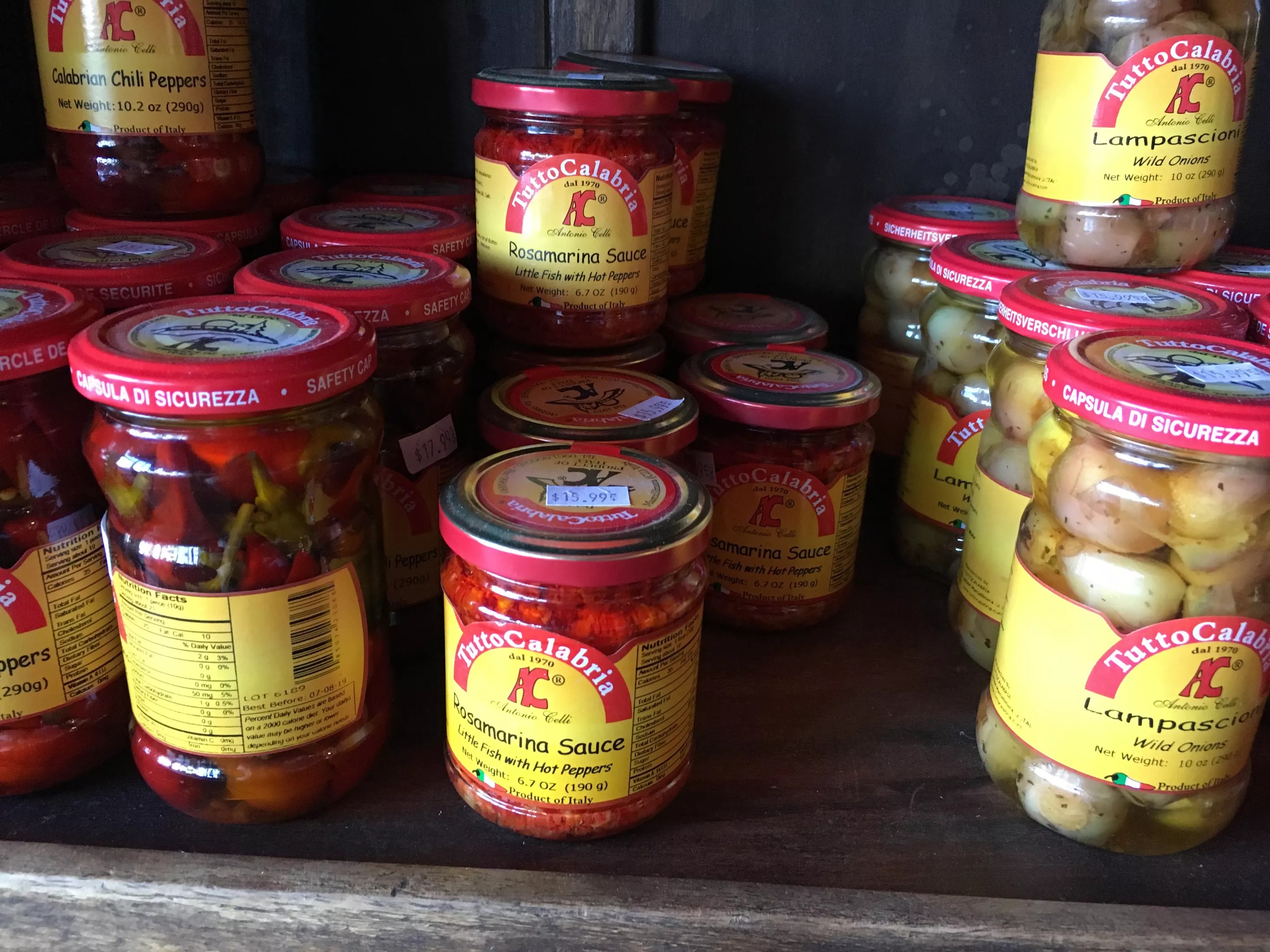 Andreoli carries wild onions preserved in oil. The shelves are filled with off-brand Neapolitan 00 flours, high-end anchovy jars, and even jars of the little-known spicy fish condiments popular in Italy’s extreme south.